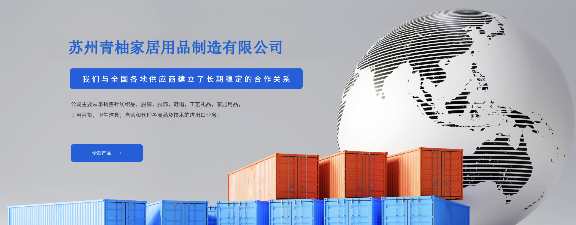 蘇州青柚家居用品制造有限公司,主要從事銷售針紡織品,服裝,服飾,鞋帽,工藝禮品,家居用品,日用百貨,衛(wèi)生潔具,自營和代理各商品及技術(shù)的進出口業(yè)務。公司與全國各地供應商建立了長期穩(wěn)定的合作關(guān)系。為了提供更好的品質(zhì)與服務,旗下設立了倉儲,檢品,檢驗,包裝為一體的公司,確保質(zhì)量的同時能夠按時交貨。